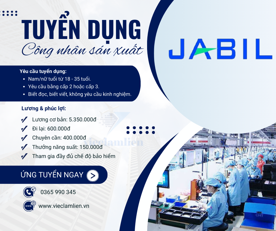 CÔNG TY TNHH JABIL VIỆT NAM – KHU CÔNG NGHỆ CAO – QUẬN 9 – TP.HCM CẦN TUYỂN LAO ĐỘNG PHỔ THÔNG